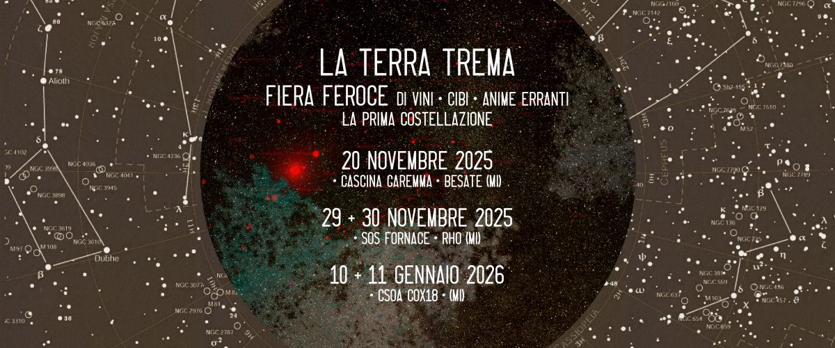 È la prima costellazione, ci auguriamo di disegnarne di nuove, di ritrovarci a La Terra Trema 2025, Fiera Feroce di vini, cibi, anime erranti. Come sempre Festeggeremo la vita.