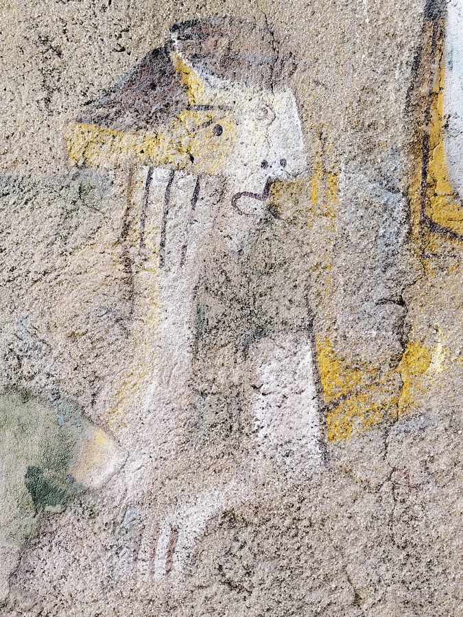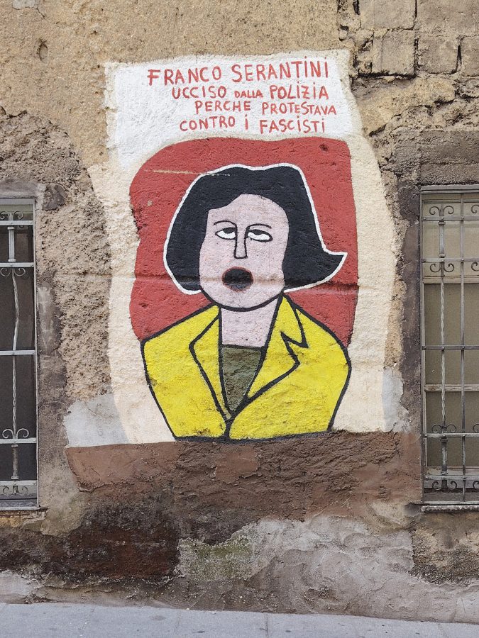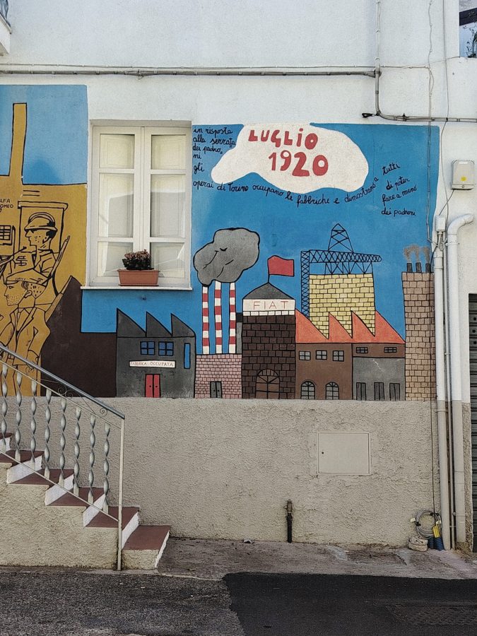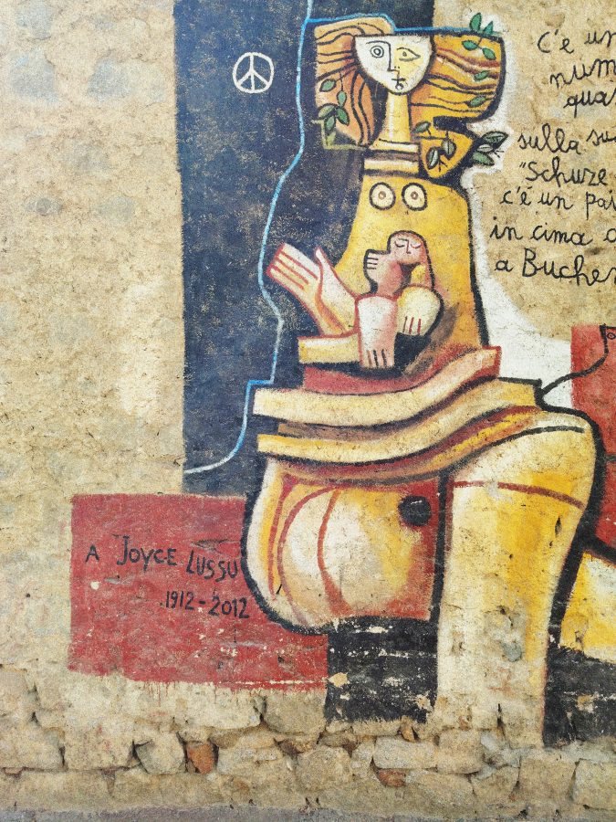 Paola Lai è cara amica di Peppino e dentro il Comitato Orgolese contro la Speculazione Energetica Ventu Hontrariu (Comitato che ha scritto anche su queste pagine). Con lei abbiamo attraversato Orgosolo e la Storia del mondo dipinta sulle sue pareti, a partire dal 1975. Quella stessa che Peppino ha incontrato sbarcando giovincello nell’ultracontinente. Orgosolo mostra un riconoscimento complice e alla pari delle lotte compiute da altri popoli: il massacro genocida in Palestina, il colonialismo famelico, l’eccidio dei nativi in America, il furto delle terre, il Vietnam, la Sicilia, Cuba, le uccisioni fasciste, quelle poliziesche, gli scioperi operai, le lotte contadine e quelle dei banditi barbaricini. Tutto è impresso, sulle case, sulle vite quotidiane.