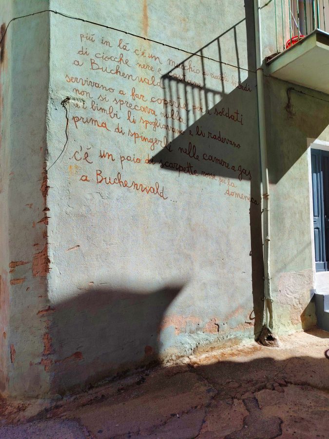 «Scuola impropria», fa accenno Paola ricordando l’antropologo sardo Michelangelo Pira. Evocando un istruirsi comunitario, qualcosa che si impara sul campo che non è arte, non è tecnica, né estro creativo, ma complicità, solidarismo diffuso, compreso e coltivato, accudito, coeso. Le vestigia del massacro genocida del popolo palestinese a opera di Israele, ritornano sulle porte, sui muri di tutte/i. Il messaggio ai devastatori di tutti i continenti è esplicito, un coro cittadino.