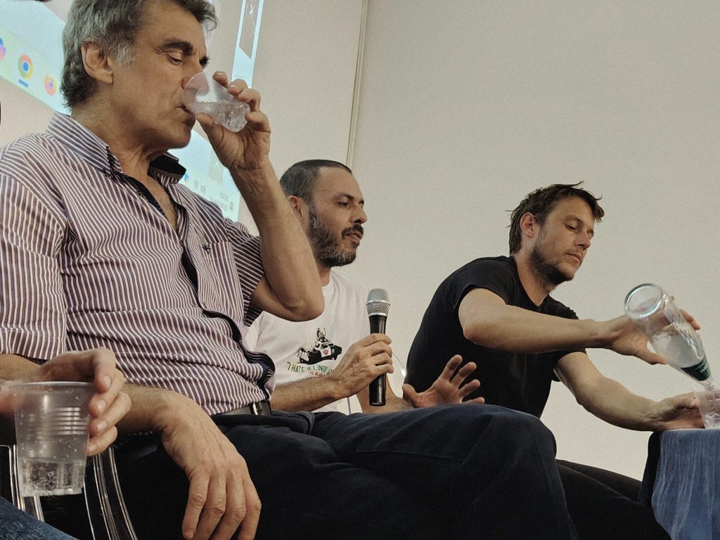 Nel ragionarci su, alla luce di anni di Fiera Feroce, selvaggia e brada, abbiamo allargato l’invito alle realtà di Sardegna che attraversano La Terra Trema. E così troviamo con noi, sul palchetto della sala dei convegni: patrona Elena Marconi, Peppino Musina di Cantina Orgosa, Pietro Marchi di Sa Defenza, Roberto Bonadeo di Sa Buca’e Meli.